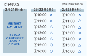 ※予約状況によっては、ご希望のお時間にご案内できない場合がございます。